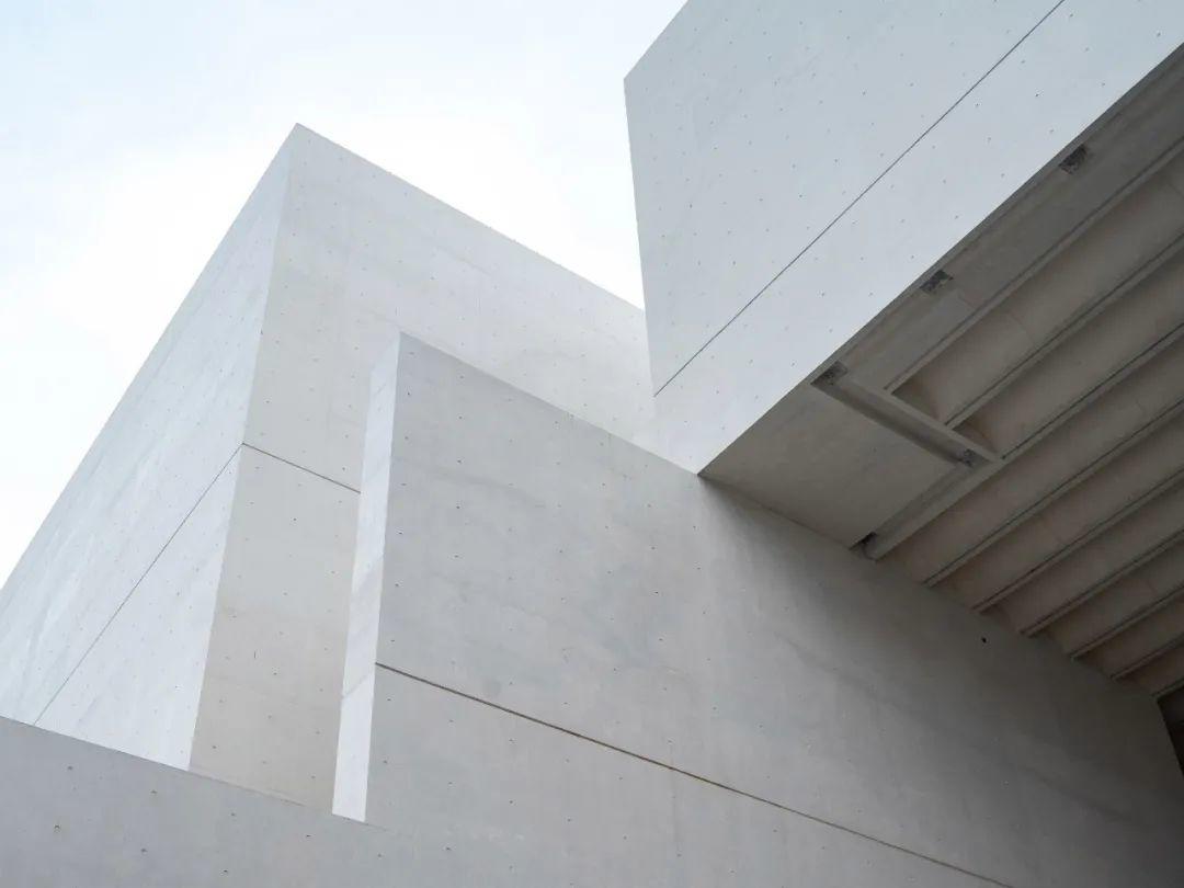 为了强调空间的抽象与当代性,建筑整体材料选用白色清水混凝土一体成型,室内外材料质感统一,建筑的体量感和空间的纯粹性得以呈现。