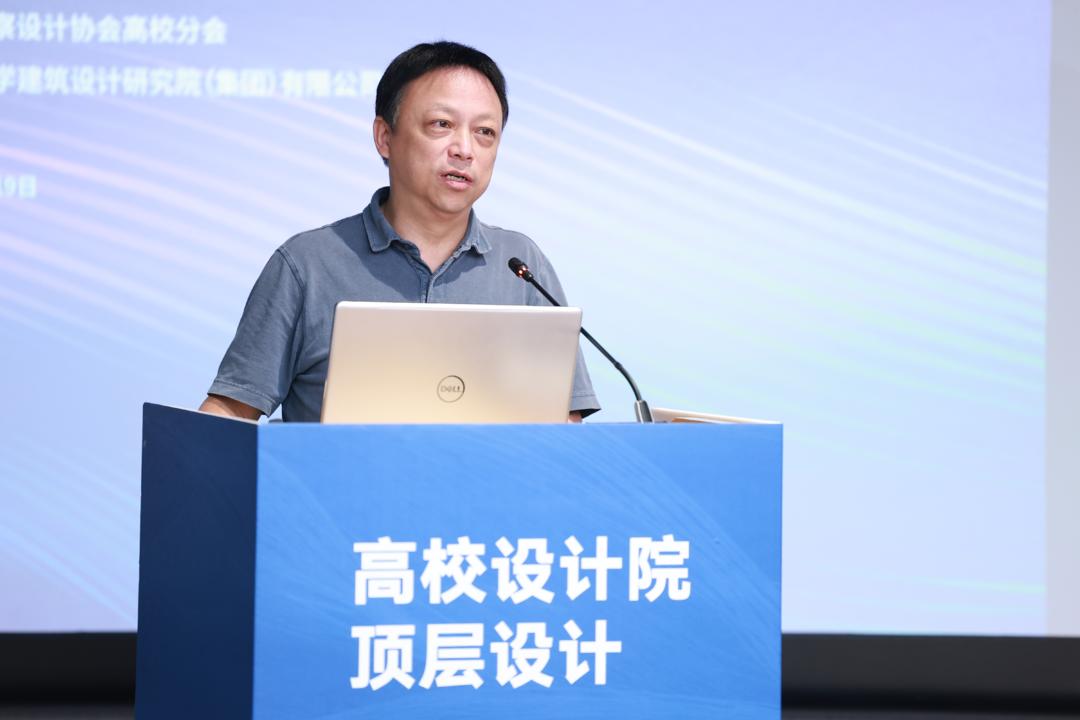 浙江大学建筑设计研究院有限公司牵头研究“行业形势”议题。浙江大学建筑设计研究院有限公司总经理、院长、总工程师杨毅在会上讲述了行业下行压力、行业地位变化及高校设计院发展策略等内容。